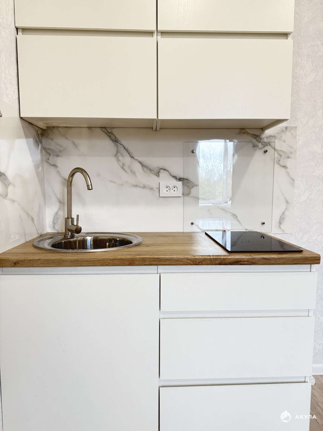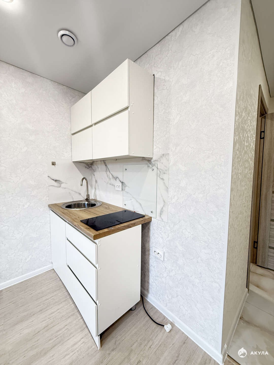 В квартире сделан новый ремонт: натяжные потолки с точечными светильниками, на полу качественный ламинат, новые входные и межкомнатные двери, санузел совмещенный с полноценной ванной , раковиной , унитазом, все в квартире выполнено в светлых приятных тонах. Окно ПВХ. Стиральная машина тоже новая, остается в подарок покупателю. В комнате организовано удобное место для готовки с раковиной , варочной поверхностью, кухонными тумбами, над кухонной зоной есть встроенная в потолок приточная вентиляция.