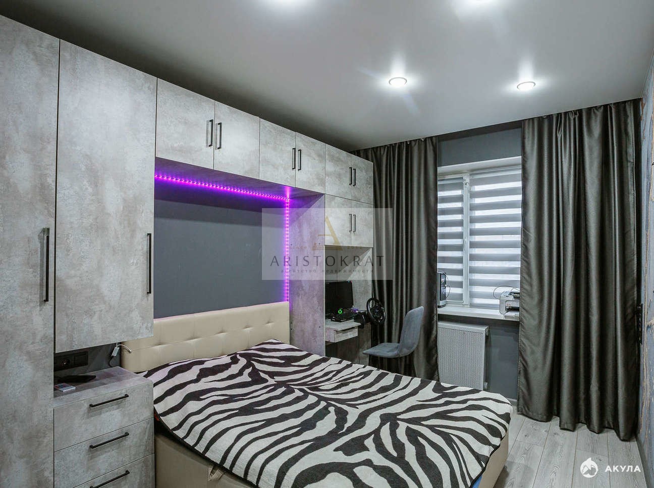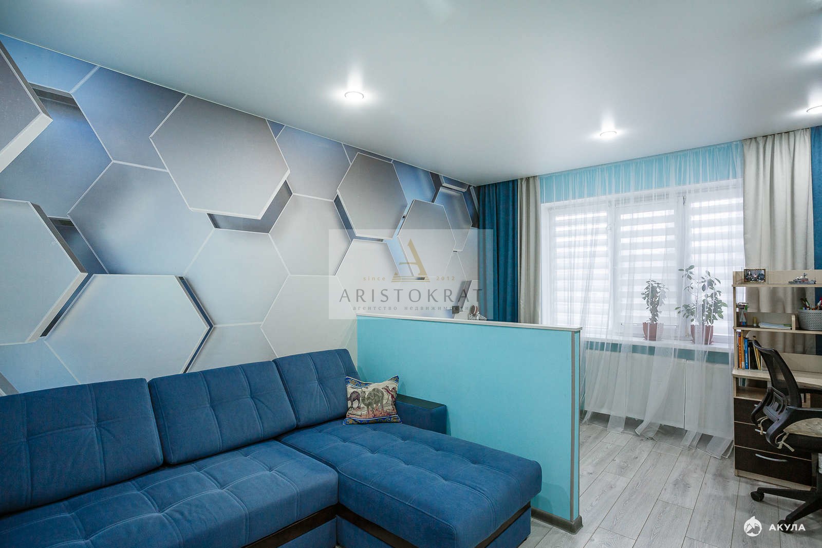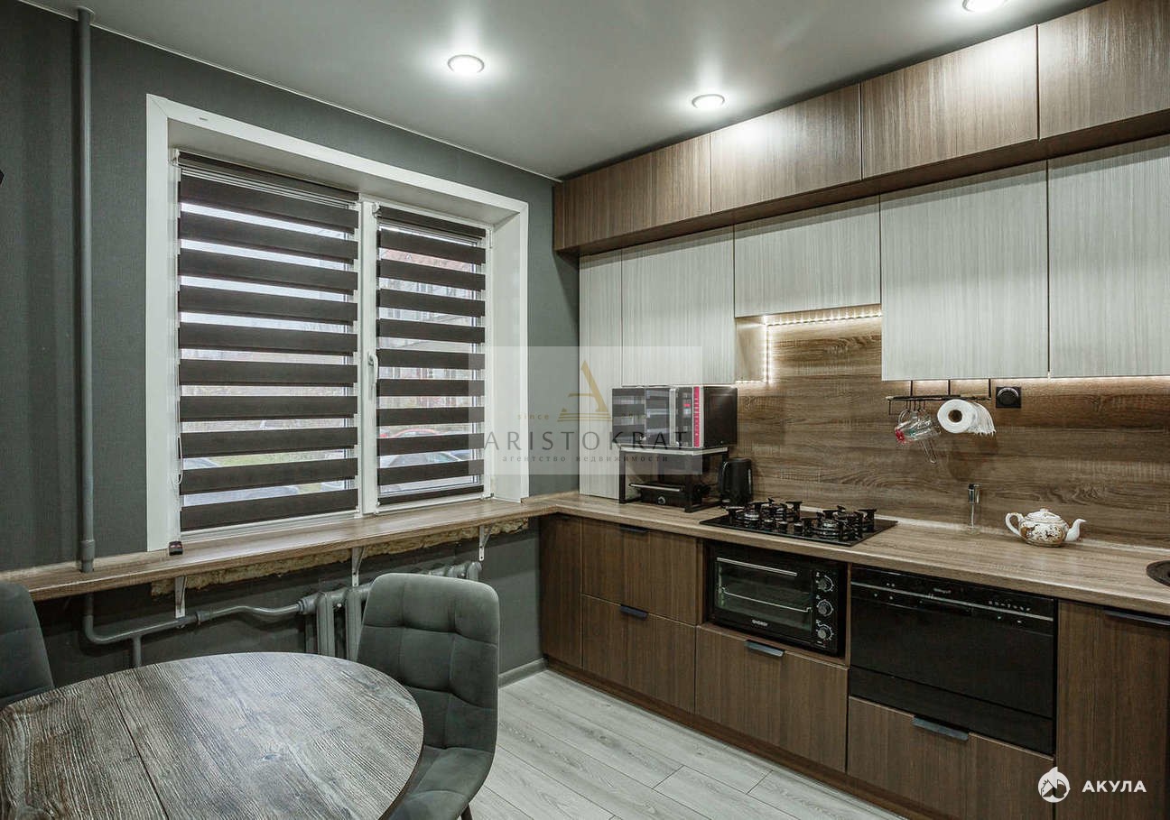 На окнах во всей квартире и на лоджии установлены новые пластиковые стеклопакеты, на потолке по всей площади смонтированы натяжные потолки с точечными светильниками. На стенах поклеены хорошие дорогие 3 -д обои.