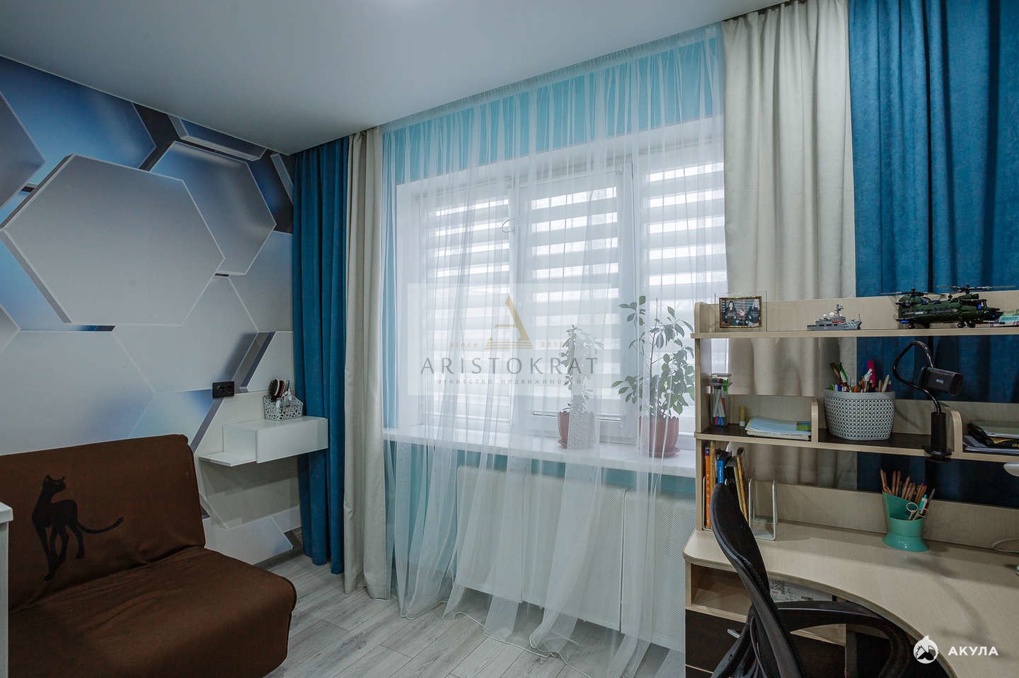 В подарок новым собственникам остаётся кухонный гарнитур и тахта в комнате.
