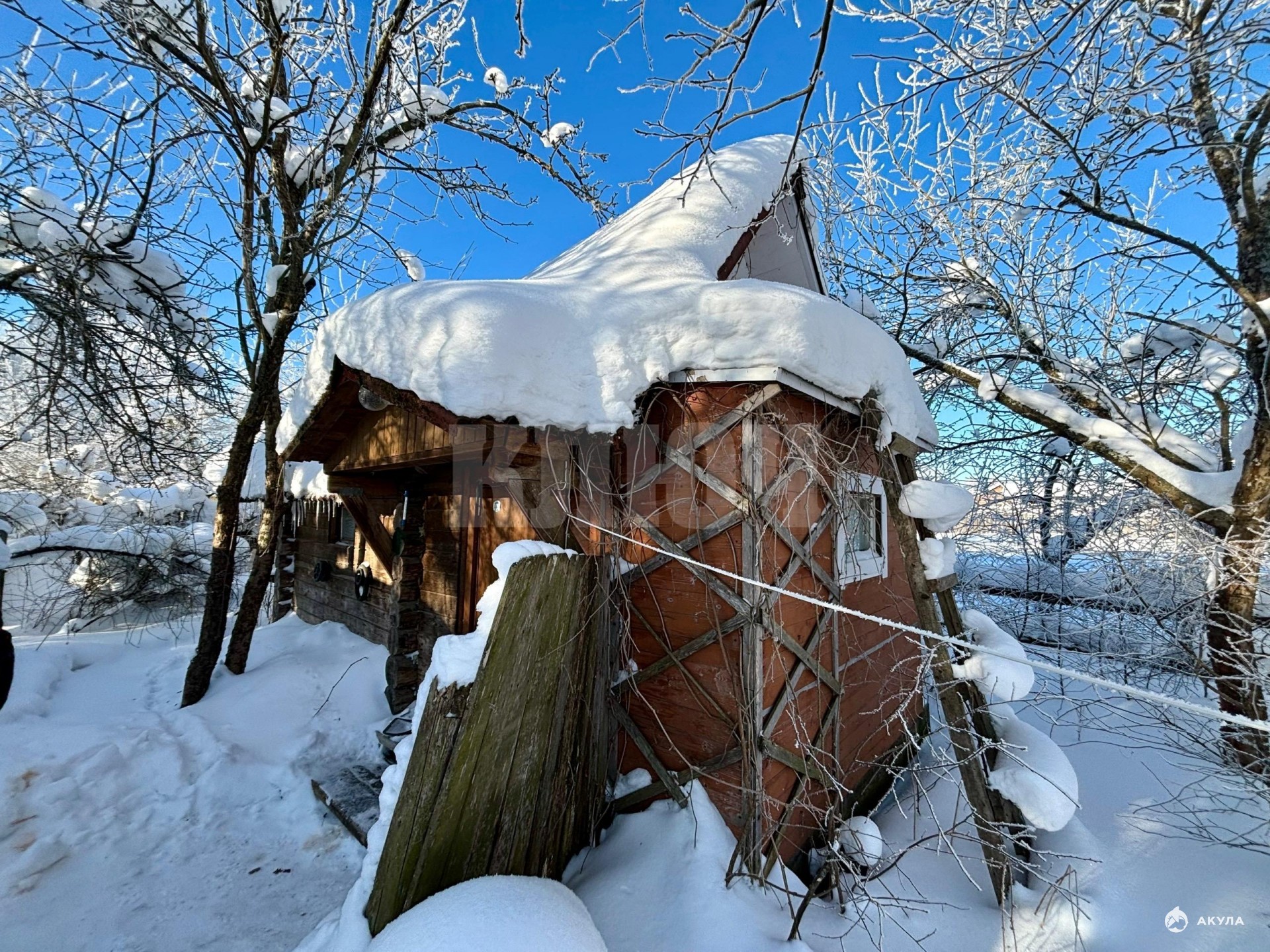 - На участке гараж (используется под сарай), плодово-ягодные насаждения, колодец.
