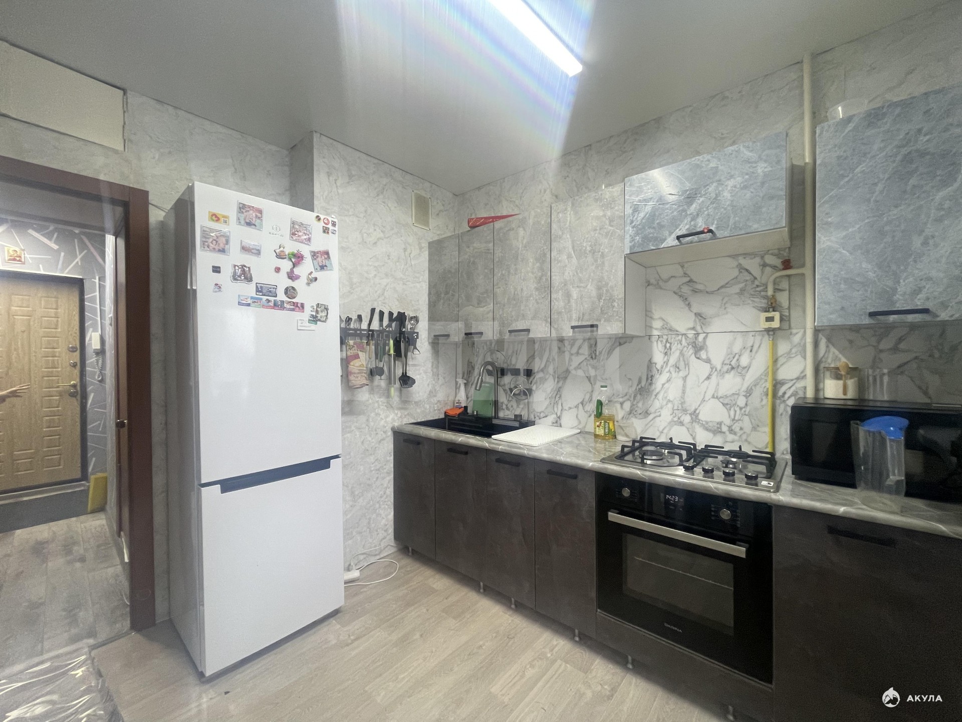 - Косметический ремонт: натяжные потолки, ламинат на полу создают приятную атмосферу.
